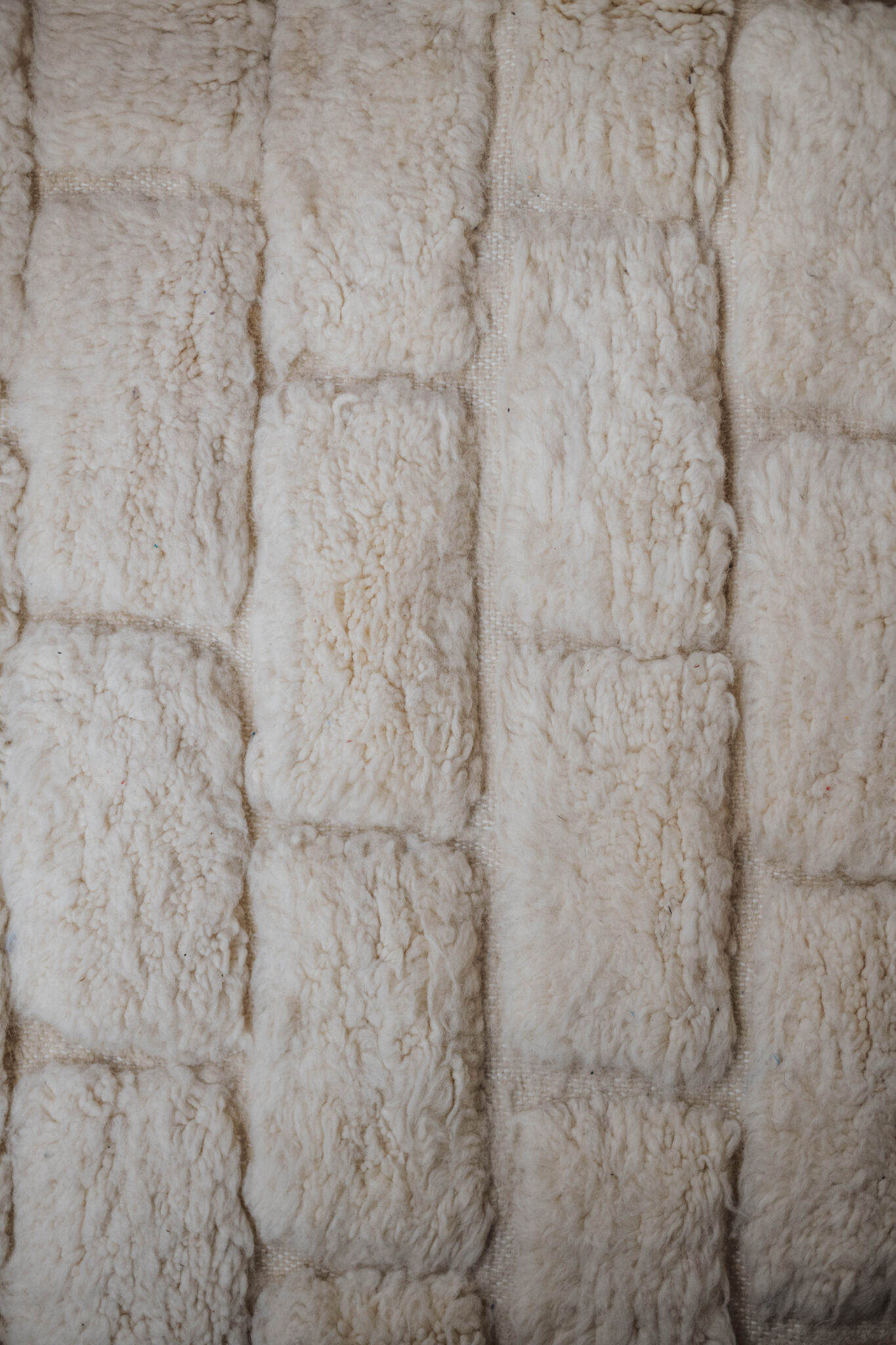 Ce tapis berbère Béni Ouarain blanc se distingue par ses motifs géométriques inspirés de formes de briques. Son design graphique apporte de la modernité et du caractère à votre intérieur, tout en conservant une ambiance douce et lumineuse.